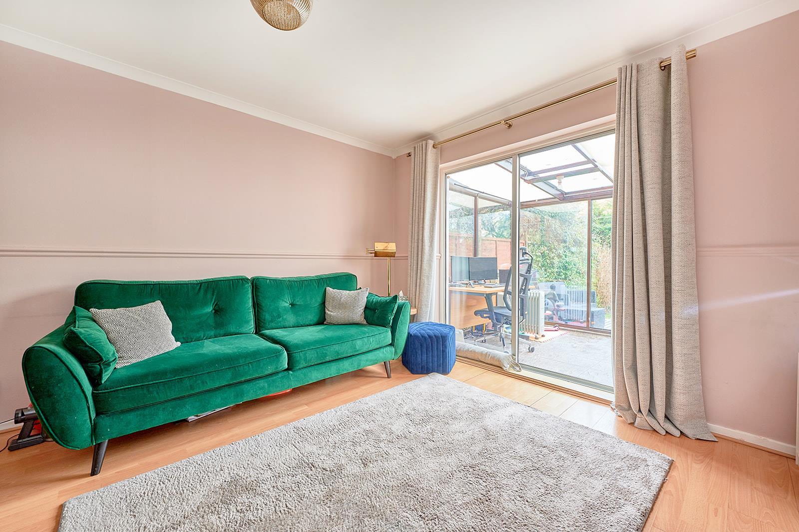 Spacious and bright reception room with sliding doors leading to the conservatory.