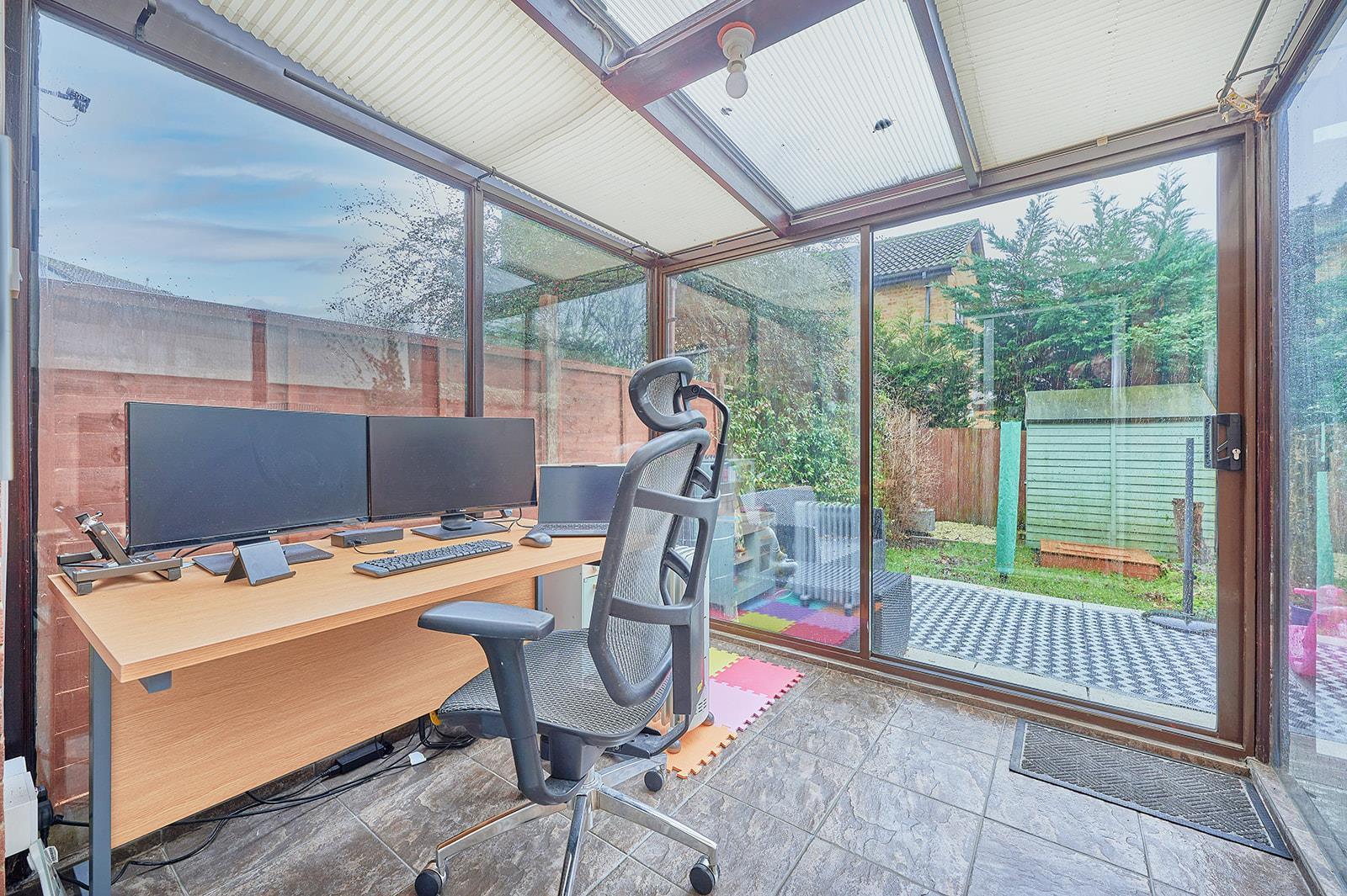 Double glazed conservatory with sliding doors opening onto the South facing garden.