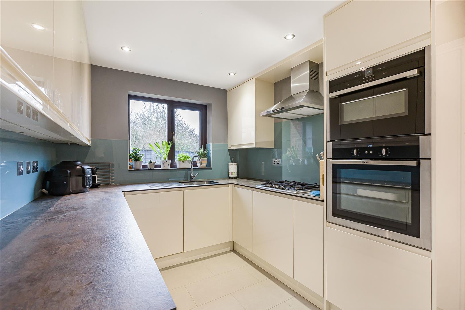 Fitted with wall and base units and a cupboard housing the gas fired Worcester boiler which has been serviced annually. There is;