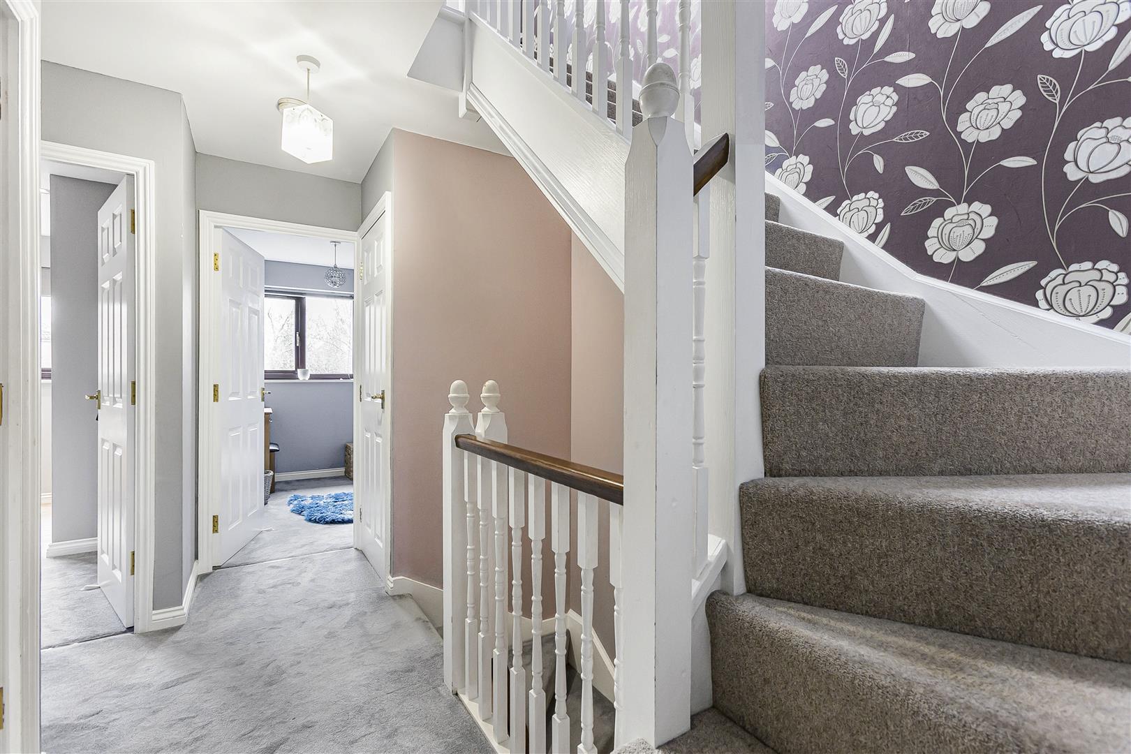 Stairs to the second floor, doors to all rooms and an airing cupboard with hot water cylinder.