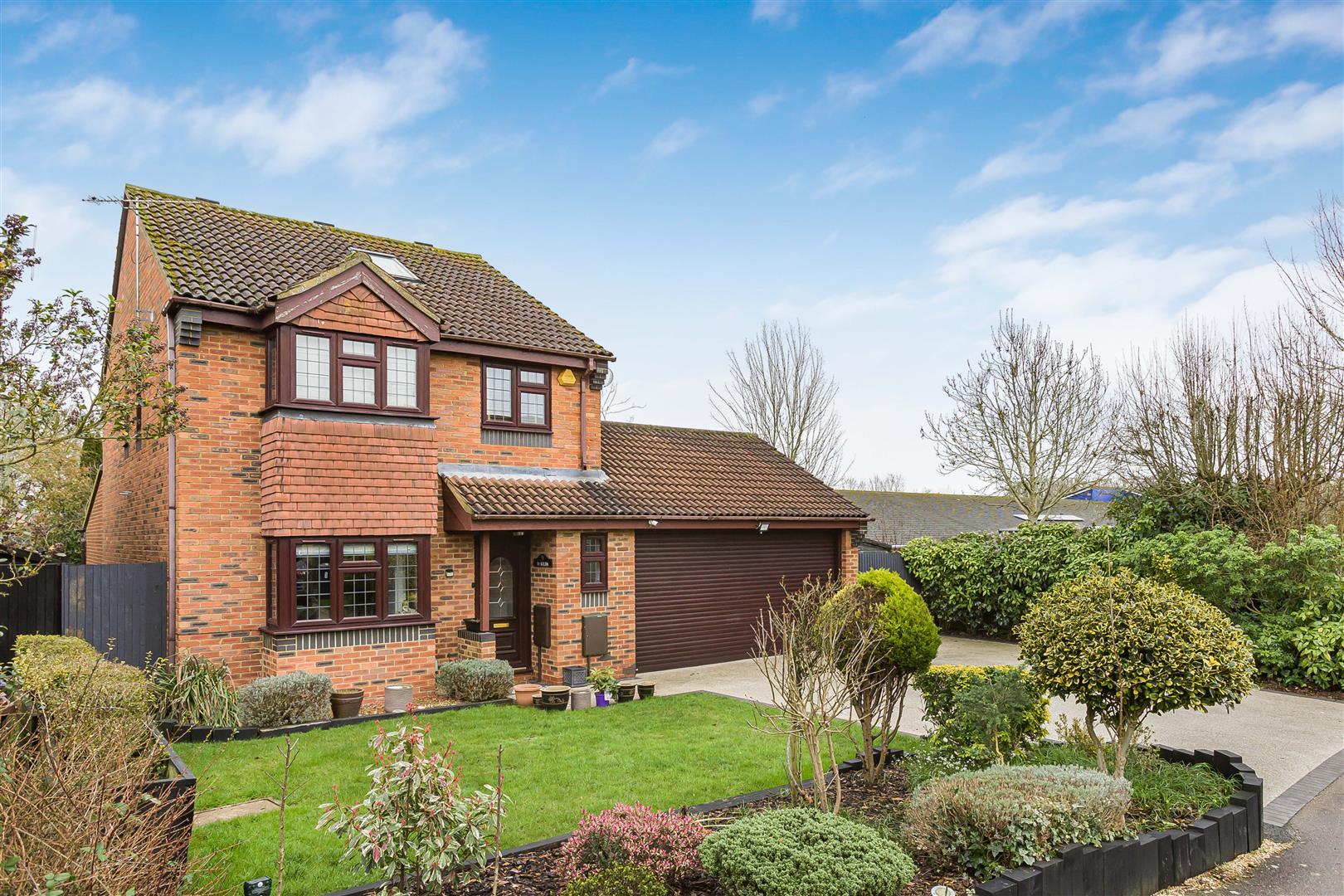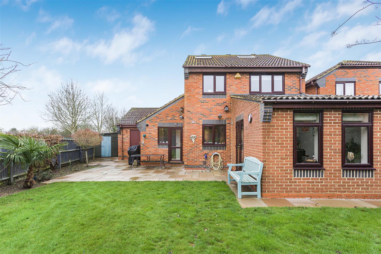 The property is nicely tucked away at the end of a cul-de-sac. There is a large Resin Bound driveway with lighting to the front providing parking for four cars and a pretty garden. The driveway leads onto;
