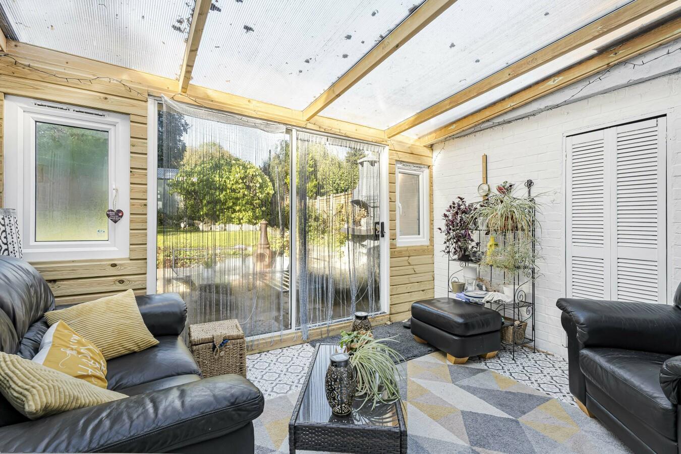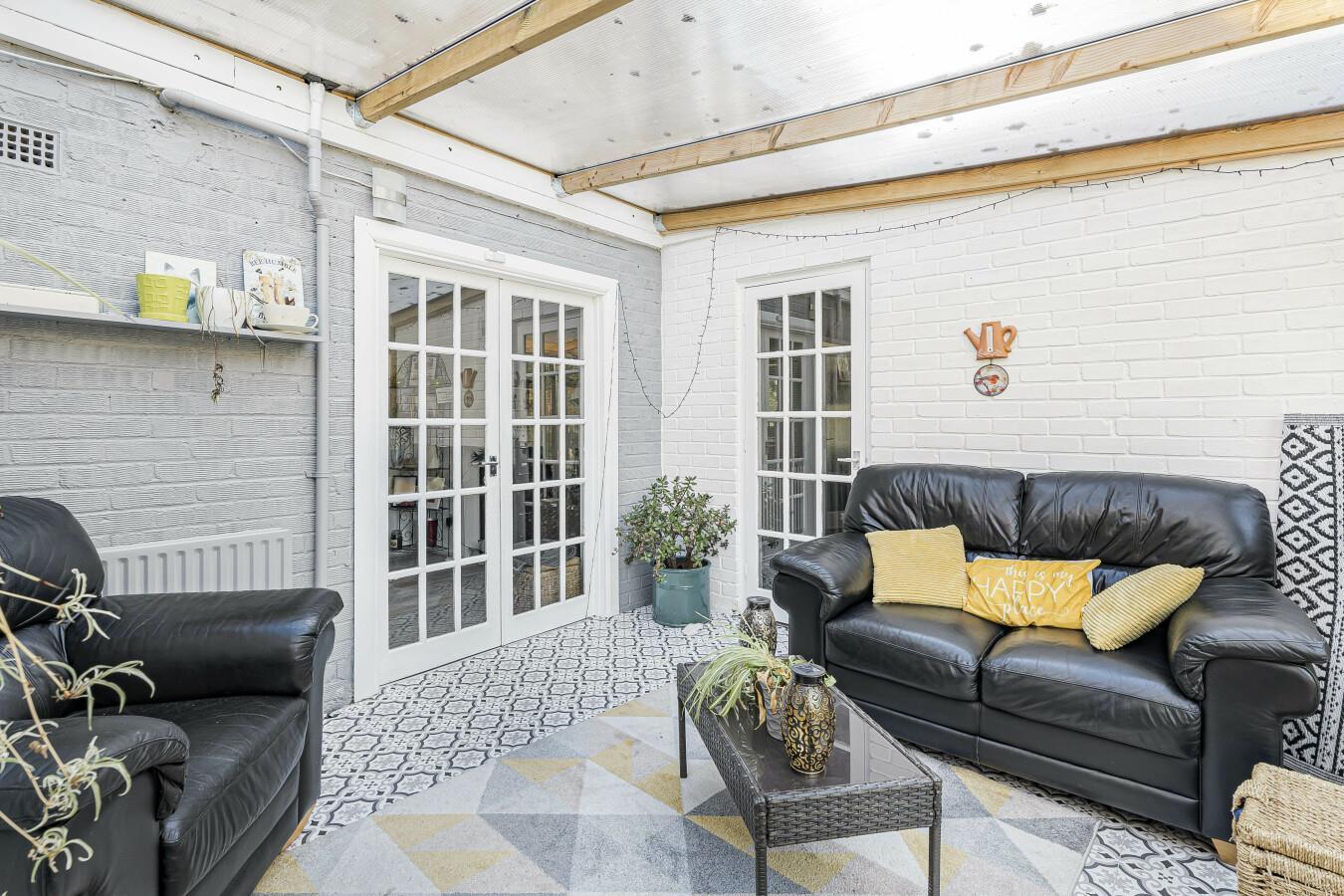Double glazed windows to the rear aspect which include patio doors leading to the rear garden. Radiator. Light and power connected. Polycarbonate roof. Deep built-in storage cupboard.