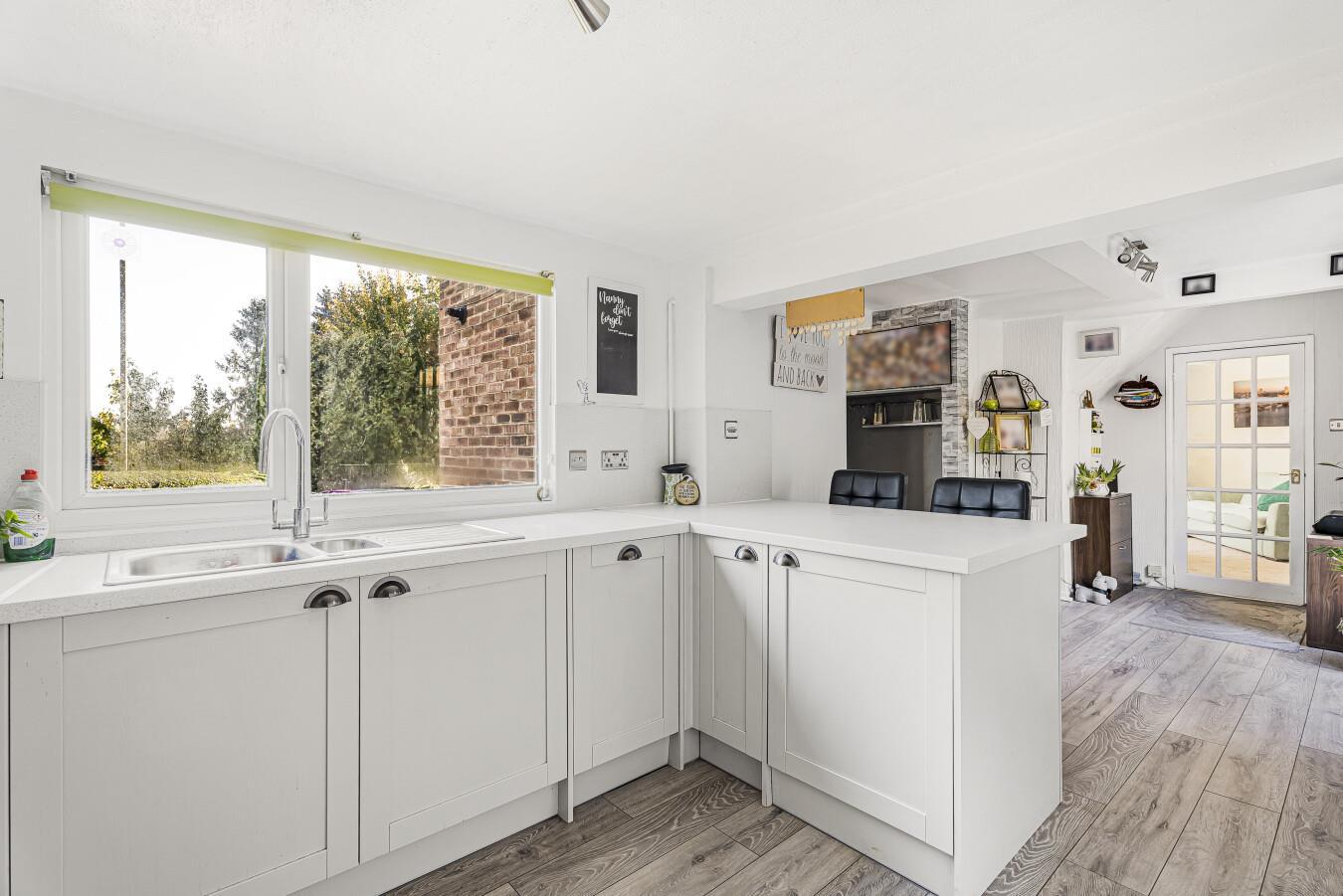 Double glazed window to the front aspect. Worcester Bosch wall mounted gas fired combination boiler. Breakfast bar on units adjoining the kitchen. Two radiators. Wood effect laminate flooring. Door to sitting room. Double opening glazed doors to the conservatory.