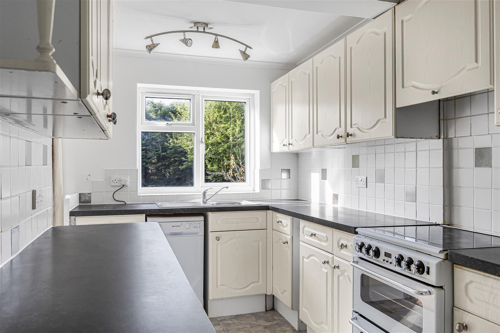 Door and window to rear, space for tall fridge/freezer and space for washing machine and tumble dryer. There is a wall mounted Worcester gas fired combi boiler.