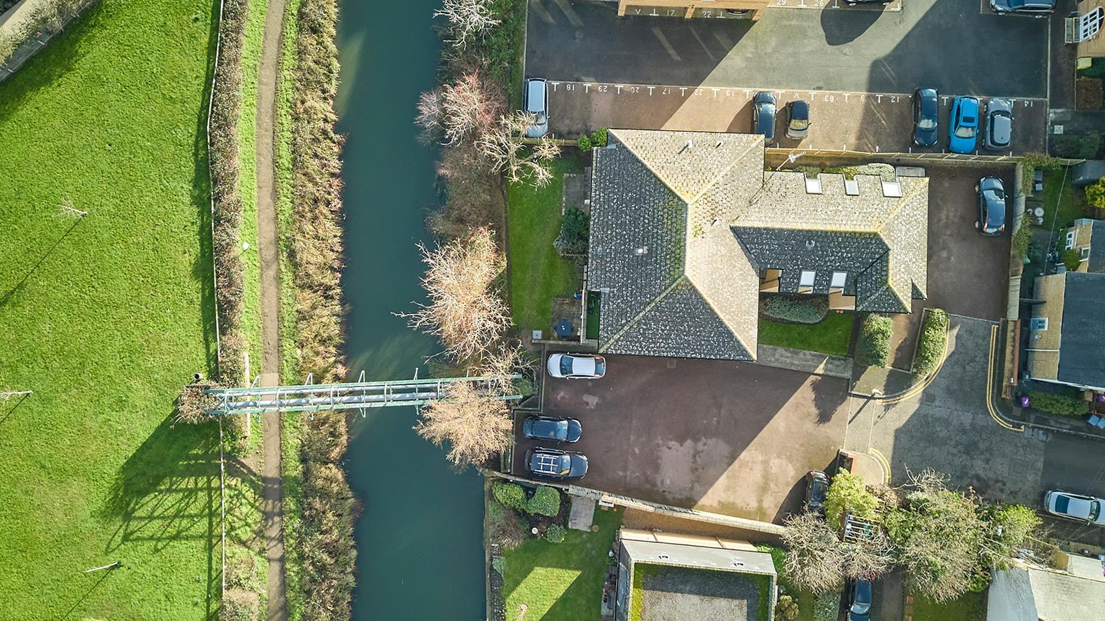 To the front of the property there is a private allocated parking space. There are also car parking spaces for visitors. The rear of the property backs onto the River Stort.