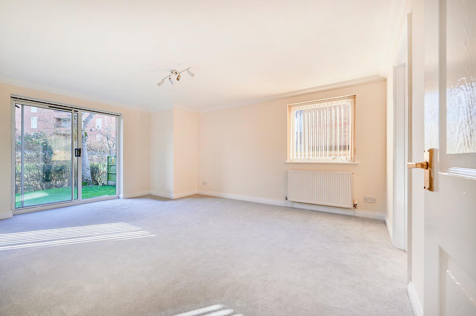 Large and bright room with sliding doors opening onto the gardens and a double glazed window to the side.