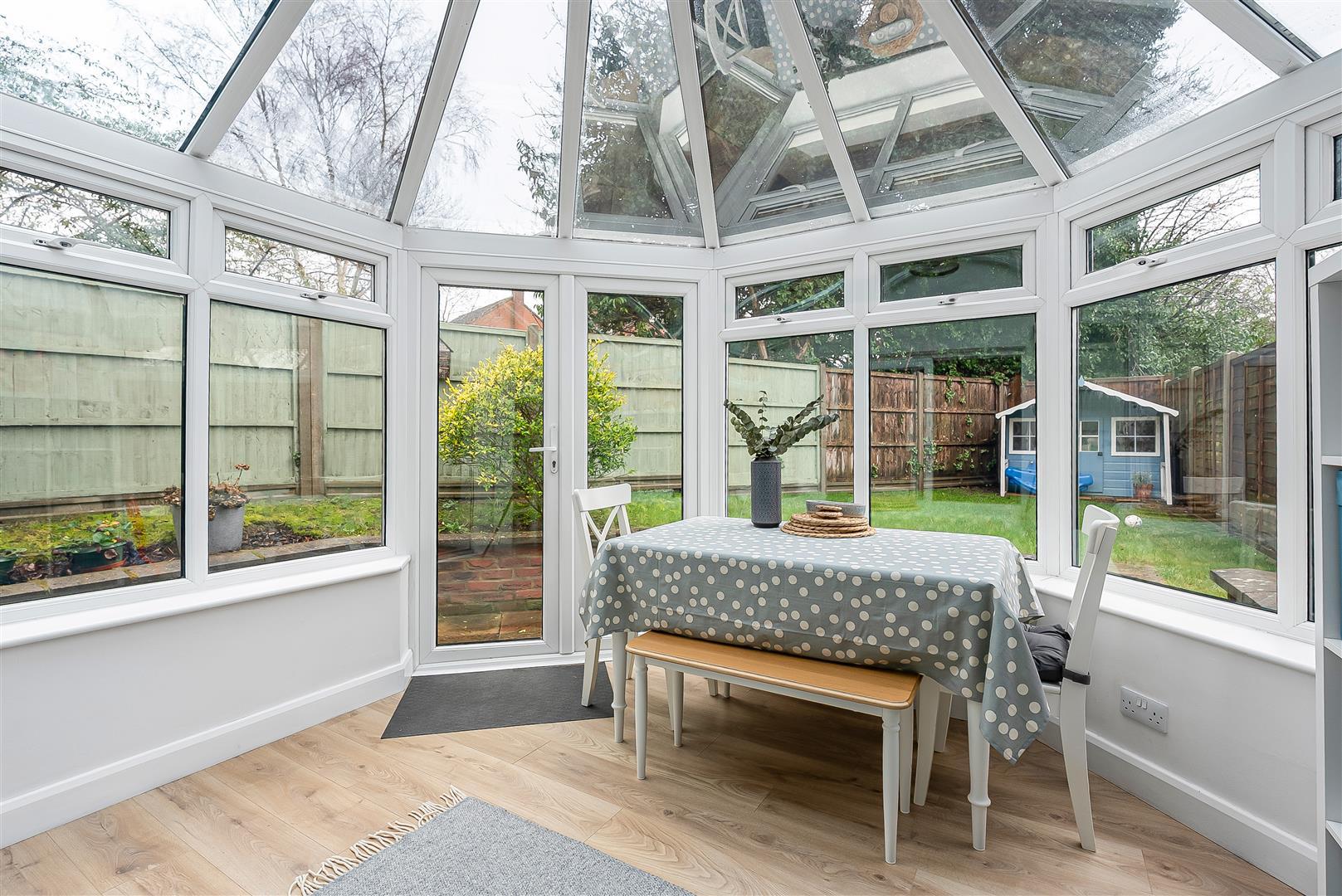 With windows and doors on two aspects, this bright and airy reception room enjoys views onto the rear garden and benefits from a large storage cupboard.
