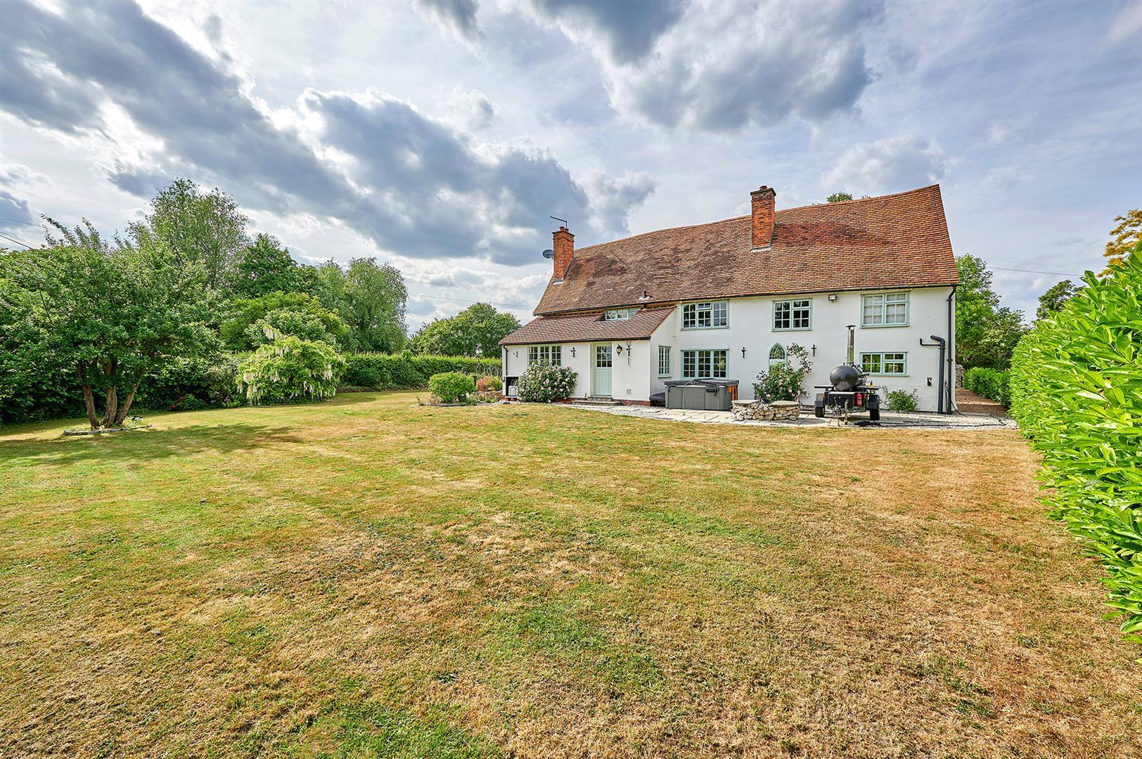 The front garden is again enclosed by hedges and there is an extensive gravel driveway which provides off-road parking for at least eight vehicles. To one side of the house is an EV charging point.