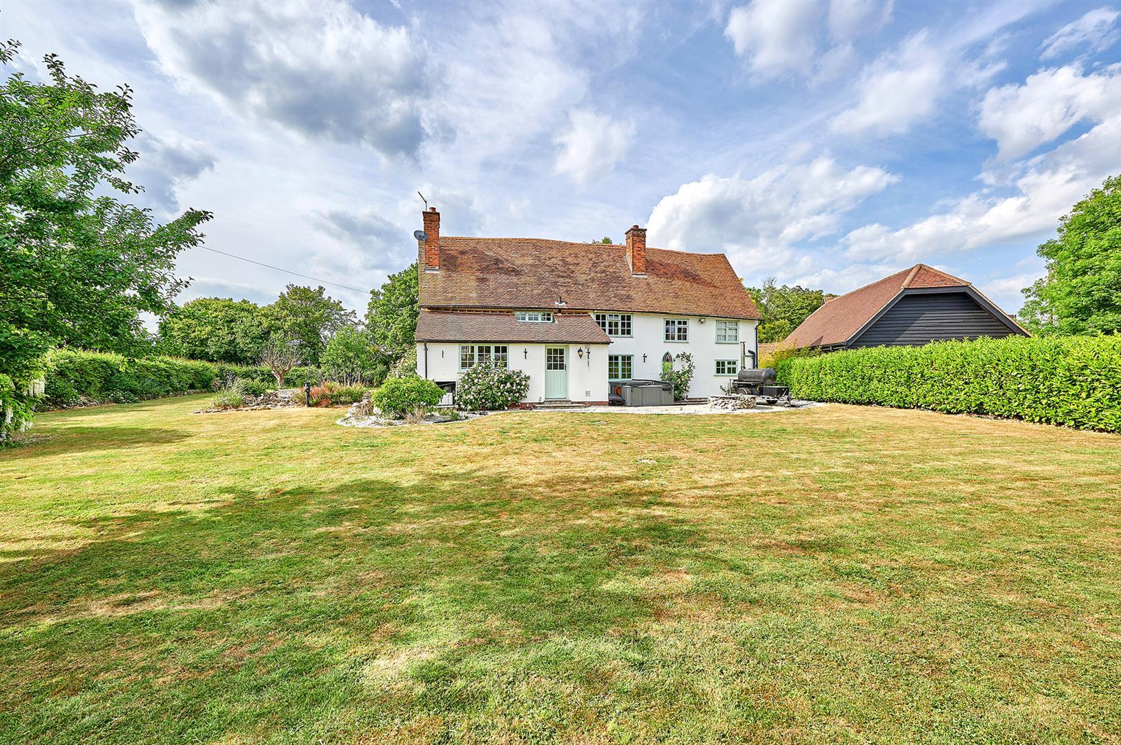 The property stands on a generous plot approaching half an acre.