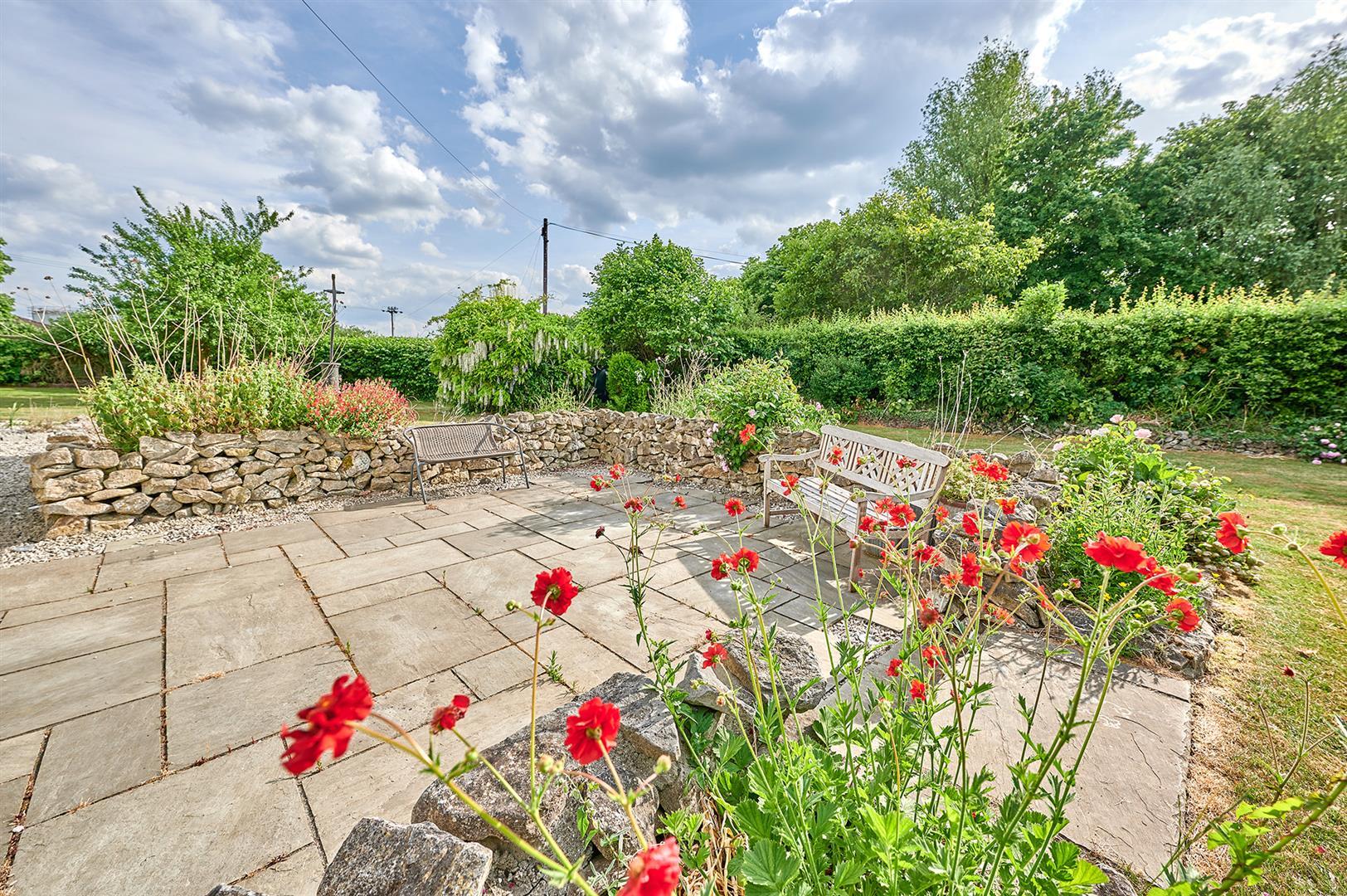 The gardens are mainly to the front, rear and one side where there is a large paved patio/terrace.