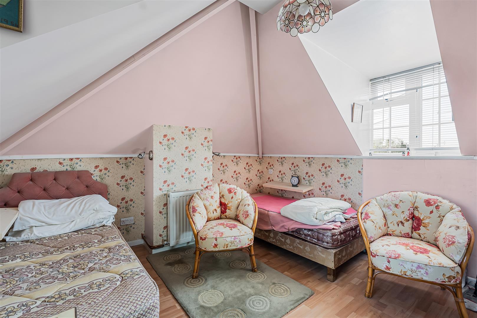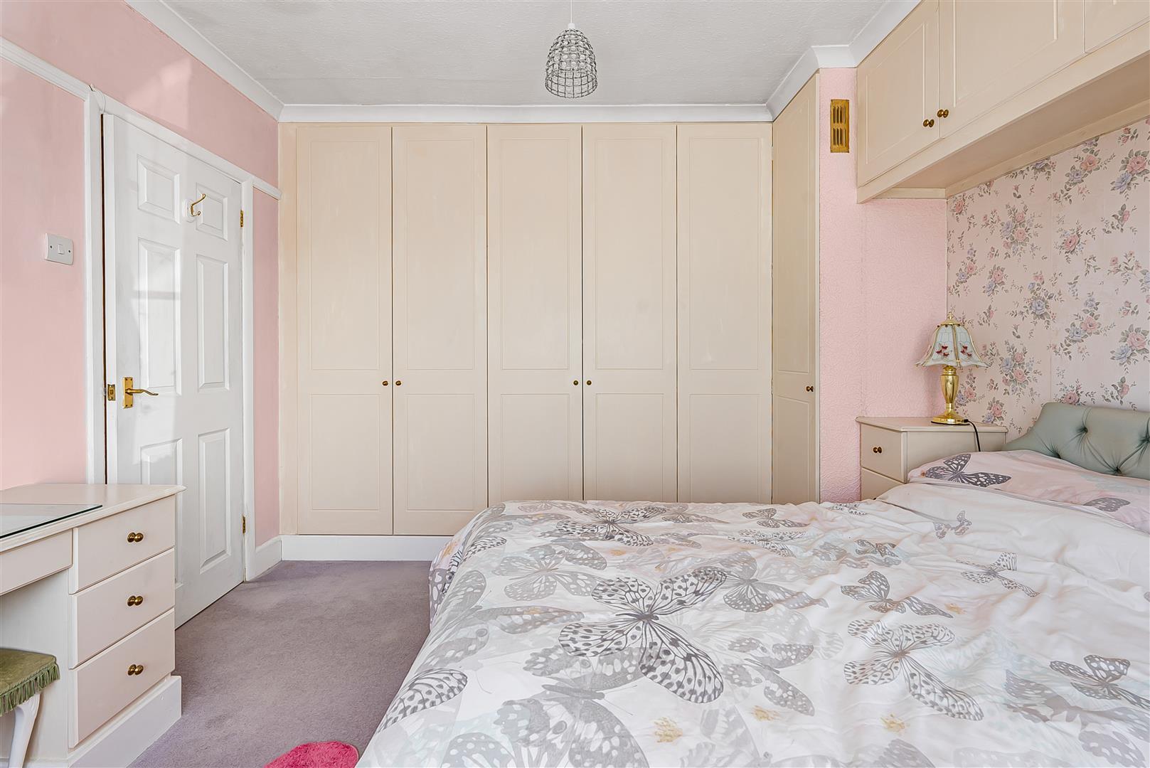 Double bedroom with fitted wardrobes including cupboard housing Worcester gas fired boiler and hot water cylinder. The boiler was last serviced in August 2025.