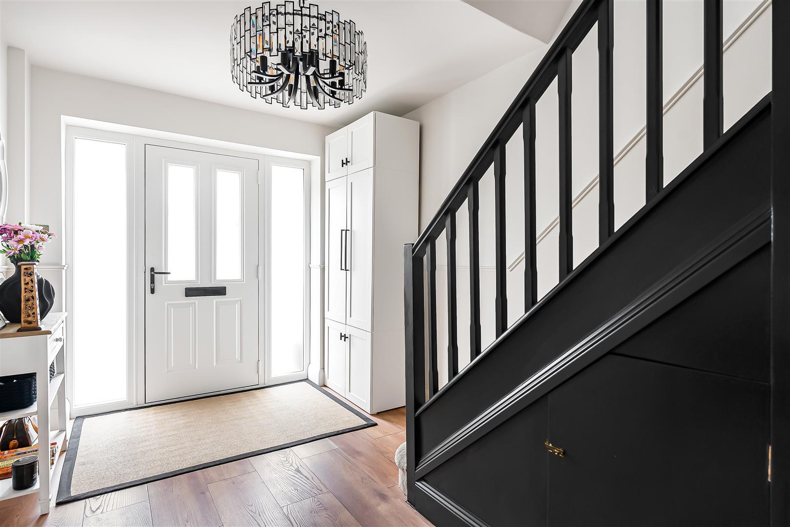 Outside light. Front door to;