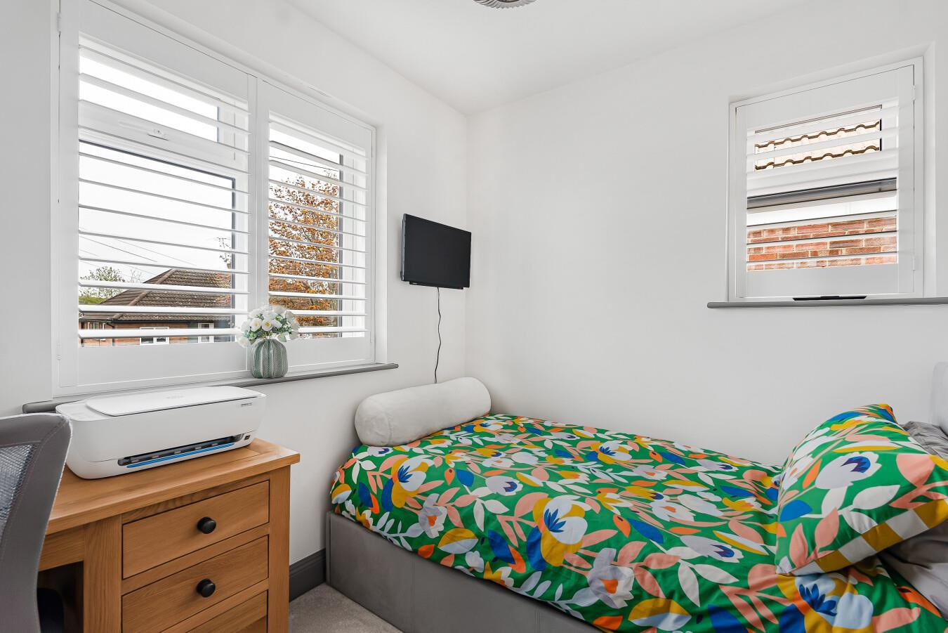 Double glazed window to the front with fitted shutters. Antique style radiator. Built-in wardrobe storage cupboard.